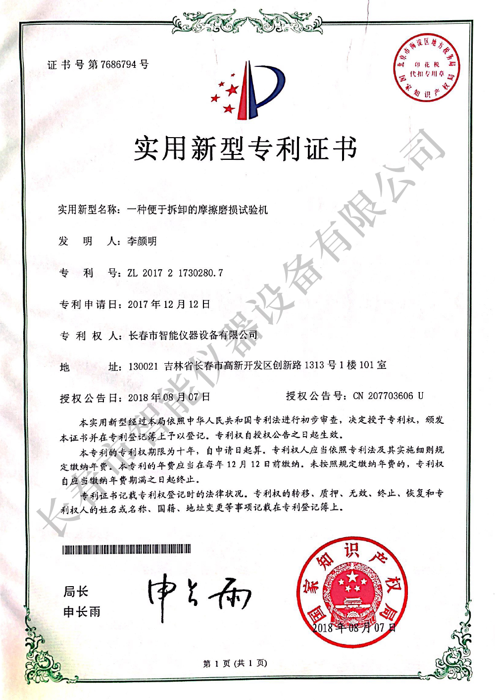 當(dāng)前位置:首頁(yè) > 榮譽(yù)資質(zhì) > 摩擦磨損試驗(yàn)機(jī)實(shí)用新型專利ZL 2017 2 1730280.7