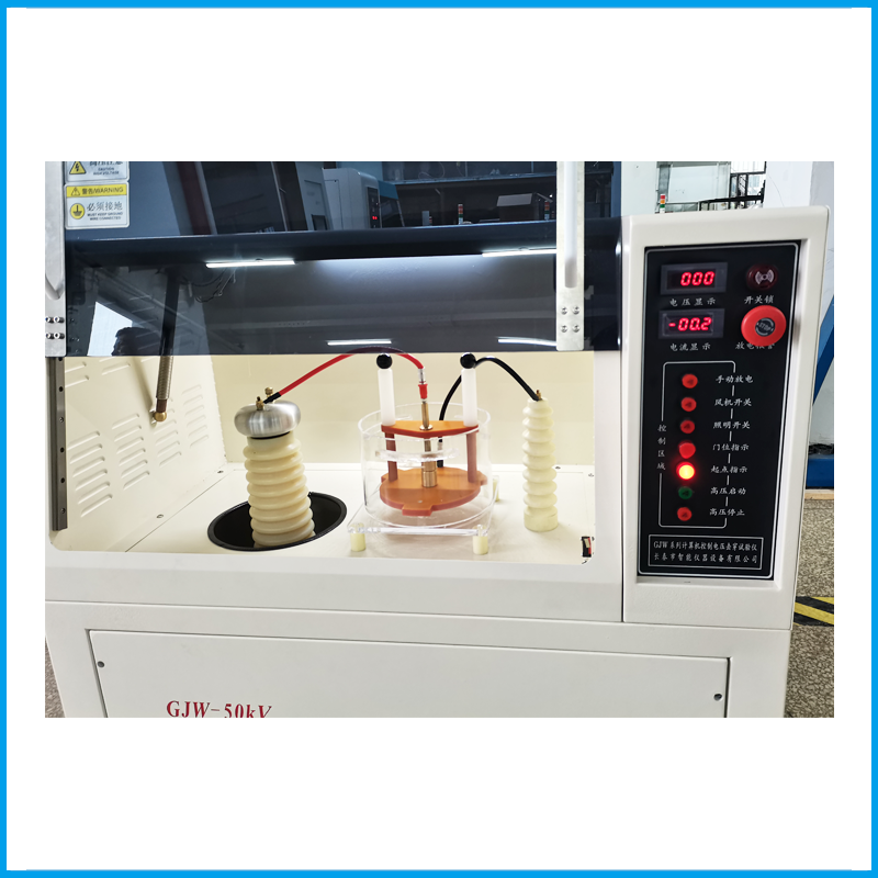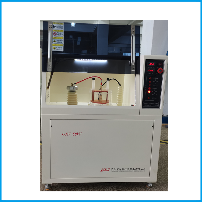 GJW-50KV電壓擊穿試驗儀主要由:升壓系統(tǒng)(高壓變壓器)、測量系統(tǒng)、A/D轉(zhuǎn)換器、放電系統(tǒng)、電極、油箱、電極定位架、計算機數(shù)據(jù)處理系統(tǒng)、軟件等組成
