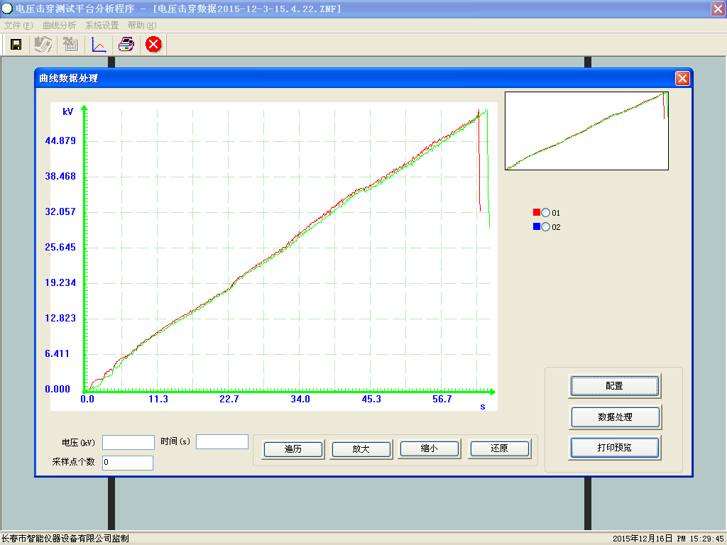 1、試驗過程中可動態(tài)繪制出試驗曲線,試驗的曲線可以多種顏色疊加對比,局部放大,曲線上任意一段可進行區(qū)域放大分析;