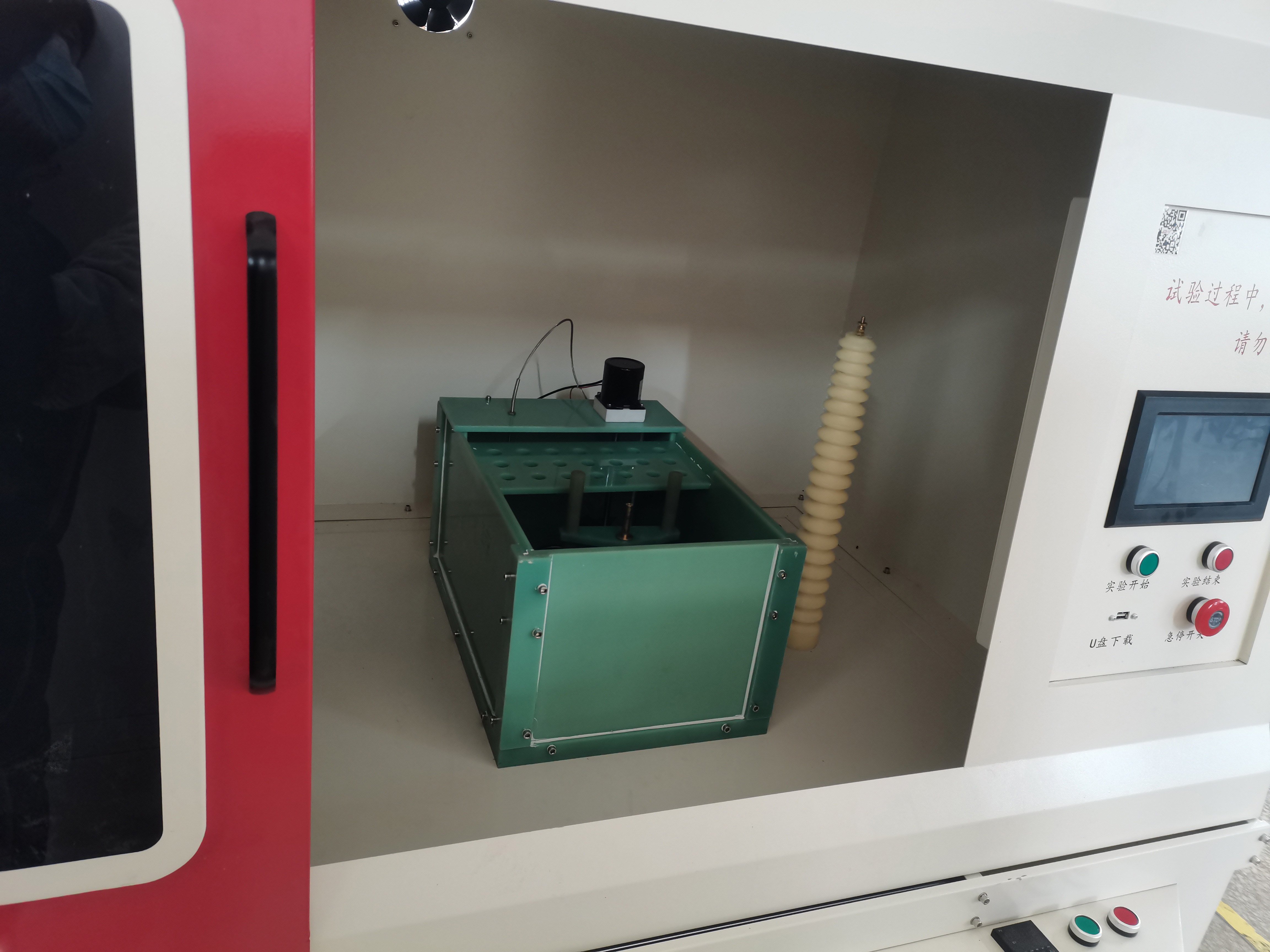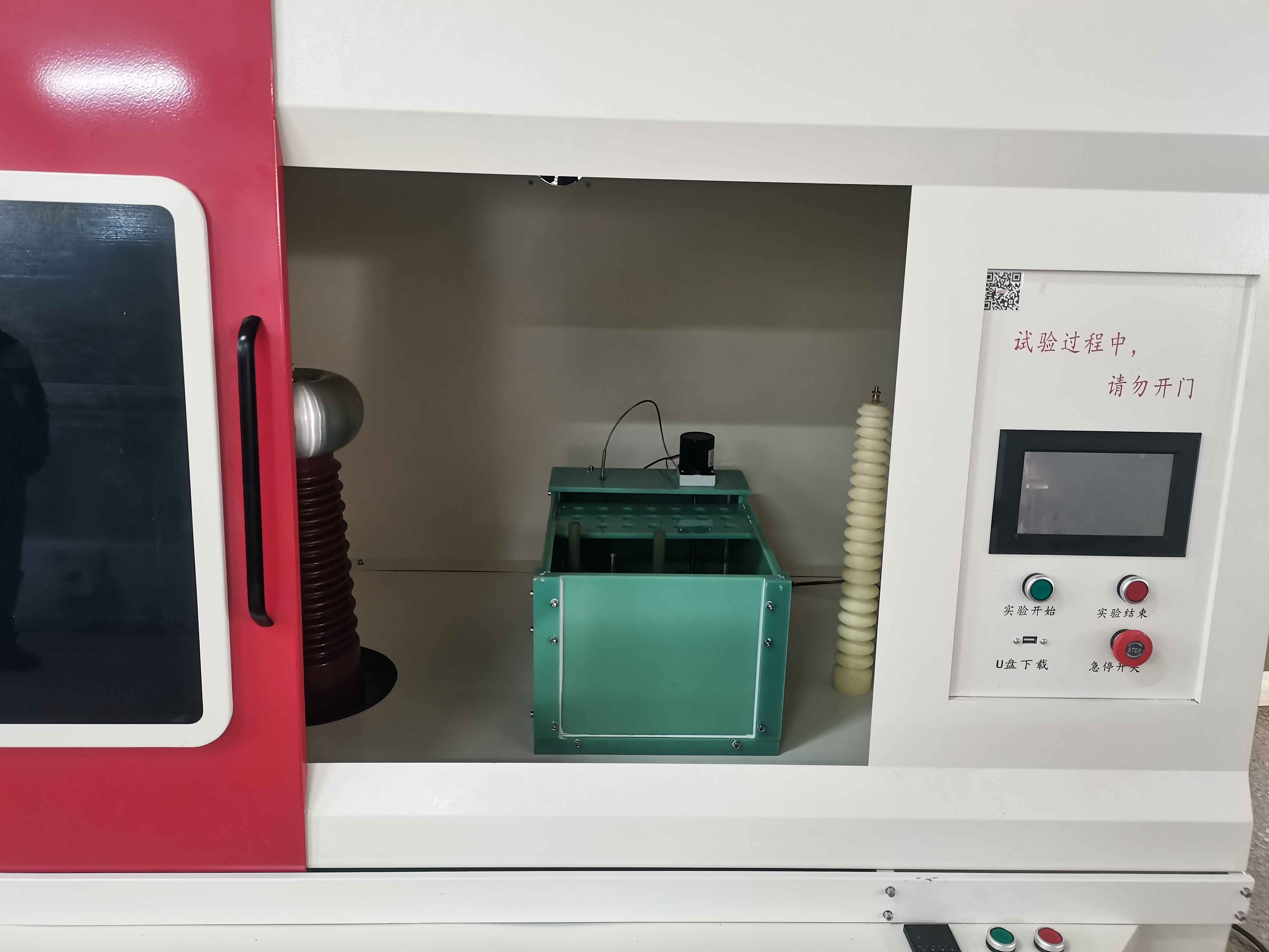 10.設(shè)備具有安全警告提示,在未關(guān)閉試驗(yàn)箱門(mén)時(shí)試驗(yàn)無(wú)法開(kāi)始,且會(huì)在(即:高壓變壓器無(wú)輸出)時(shí)會(huì)彈出警告,且試驗(yàn)過(guò)程中如果開(kāi)門(mén),試驗(yàn)會(huì)自動(dòng)結(jié)束。