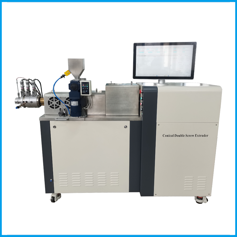 錐形雙螺桿式轉(zhuǎn)矩流變儀由主控單元與錐形雙螺桿單元組成,可在實驗室中模擬錐形雙螺桿擠出機的生產(chǎn)過程。輔以不同的模具,可直接擠出板材、管材和異型材等進行實驗。